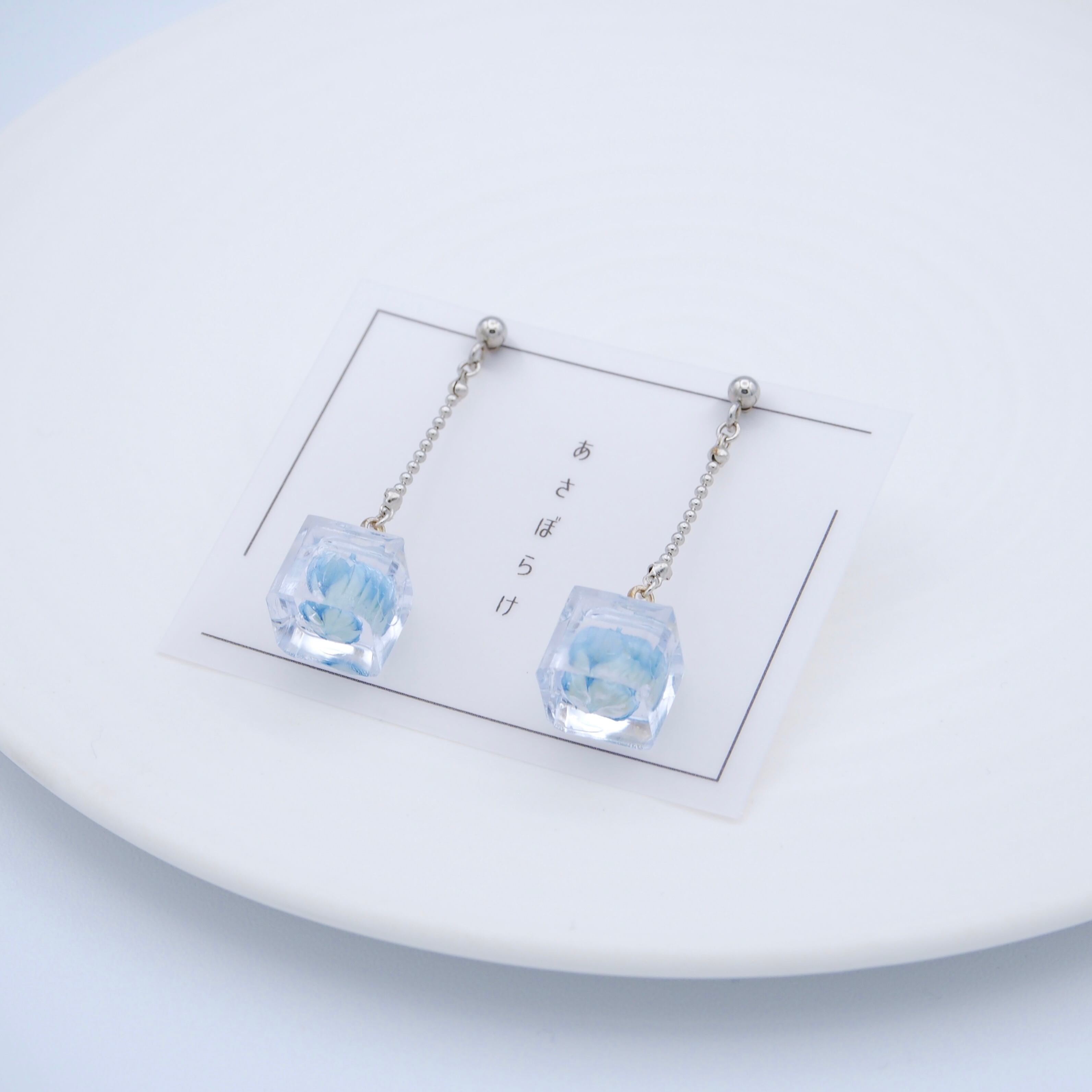 花が持つ美しさをそのまま閉じ込めた、植物標本のようなピアス。